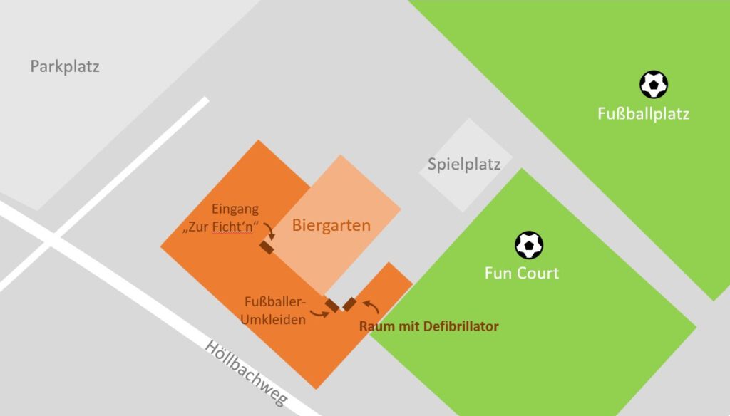 Der neu gesponserte Defibrillator der Firma REHAU hat nun seinen festen Platz auf dem Gelände des VfB Rehau am Höllbachweg 8 gefunden. Das lebenswichtige Gerät wurde im Raum links neben den Fußballer-Umkleiden angebracht – vielen Spielern auch als die „Schuhwasch-Anlage“ bekannt.