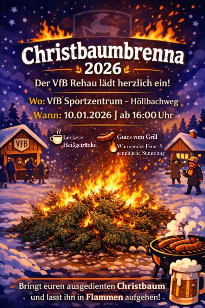 Am Samstag, den 10. Januar 2026, ab 16 Uhr entzünden wir auf dem Gelände des VfB Rehau (Höllbachweg 8) gemeinsam das Feuer.